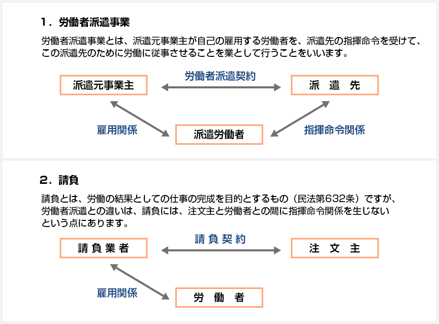 大量の注文を請負労働者だけでは処理できないとき、発注者側の労働者が請負労働者の応援をすると、実質的には派遣労働とみなされ違法となる可能性があります。発注先の労働者が請負事業主の指揮命令の下で業務が行われる場合、請負事業主が派遣元としての責任を負うことになるためです。